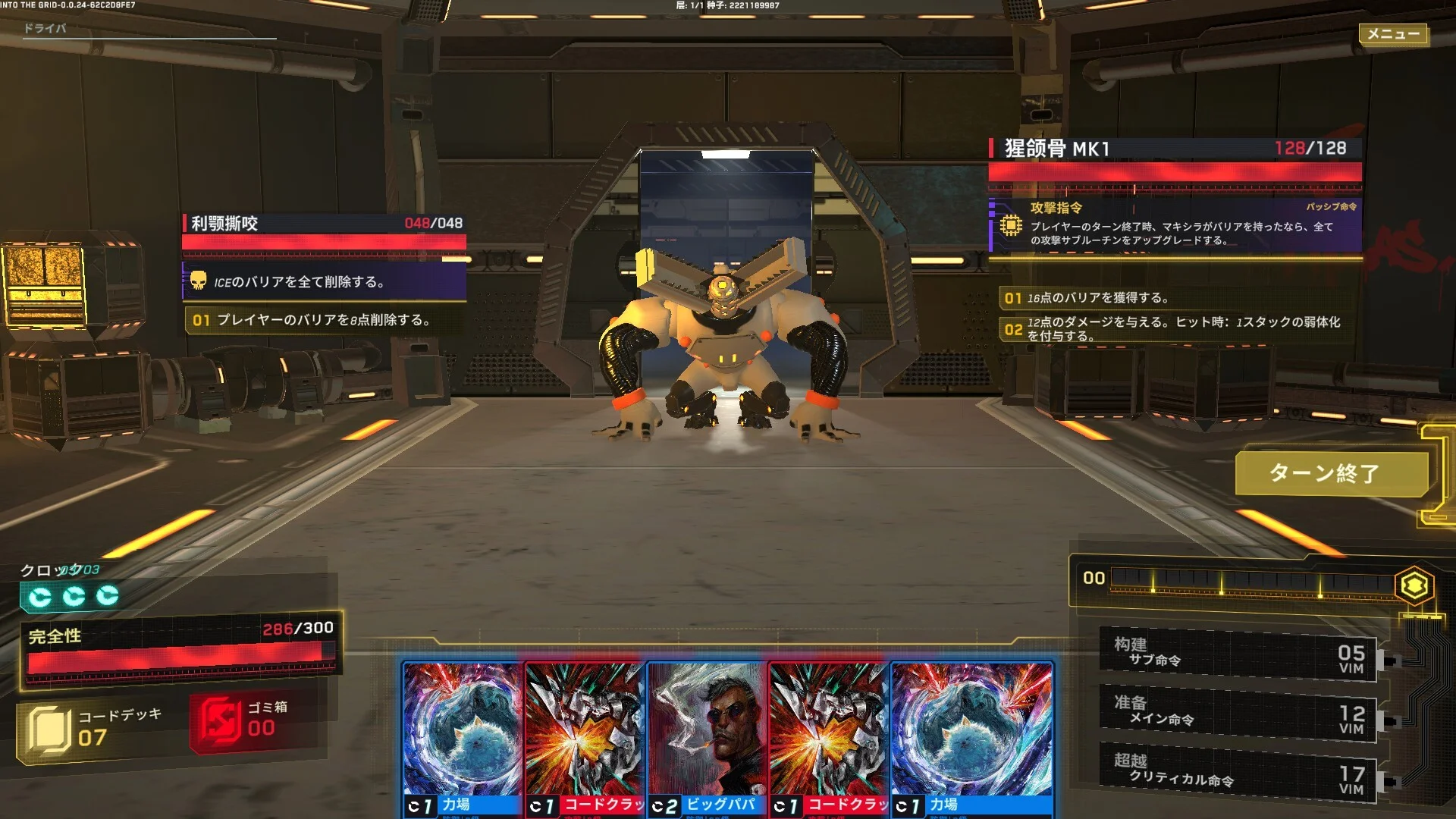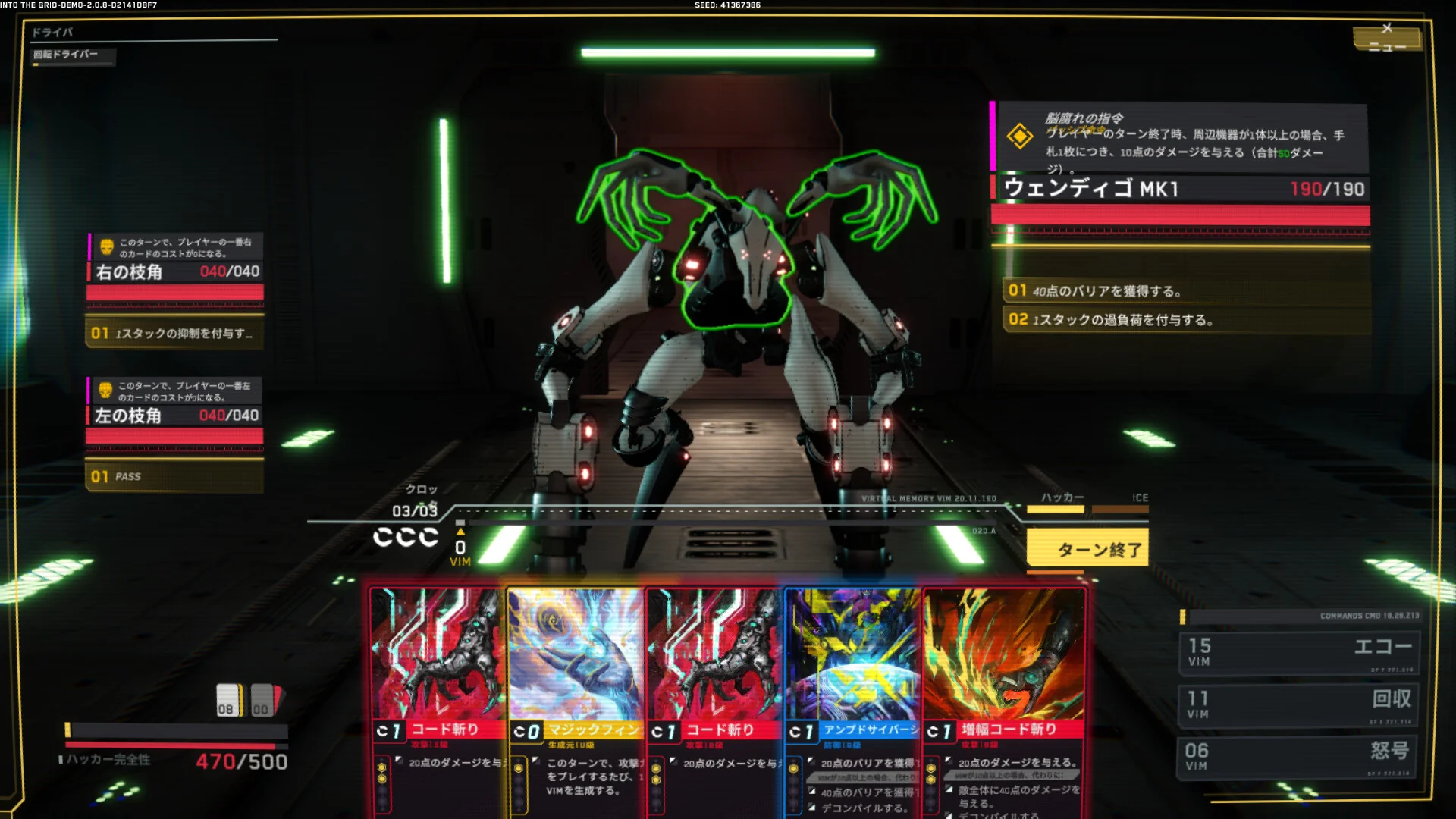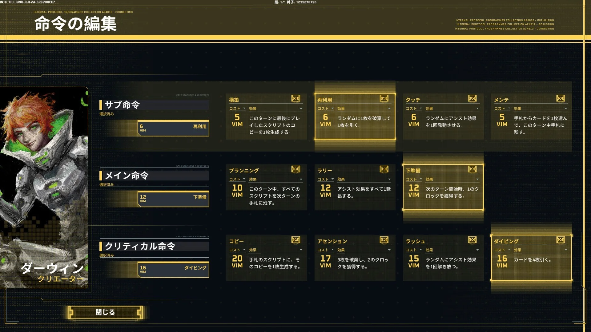 『戦術マトリックス』の中心はカード選択とデッキ構築です。プログラムと呼ばれるカードを集め、自分だけの戦術的なデッキを作り上げます。ローグライク要素が組み込まれているため、1回のランで手に入るカードは毎回異なり、その時々の状況に応じた柔軟なデッキ構築が求められます。