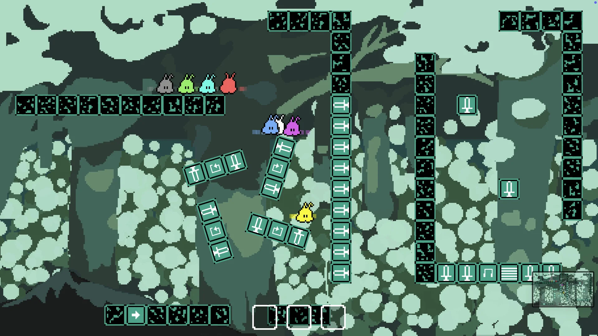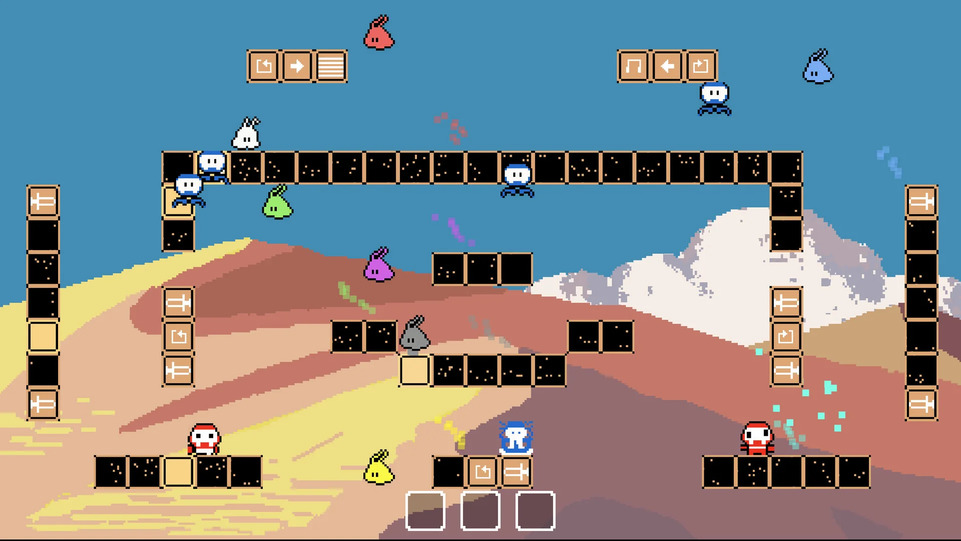 『PiPu Party』の核となるシステムは、3スロット分のシンボルが入った共有バックパックです。プレイヤーたちはこのバックパックからシンボルを選んで配置し、ステージの形状そのものを変化させながら進みます。