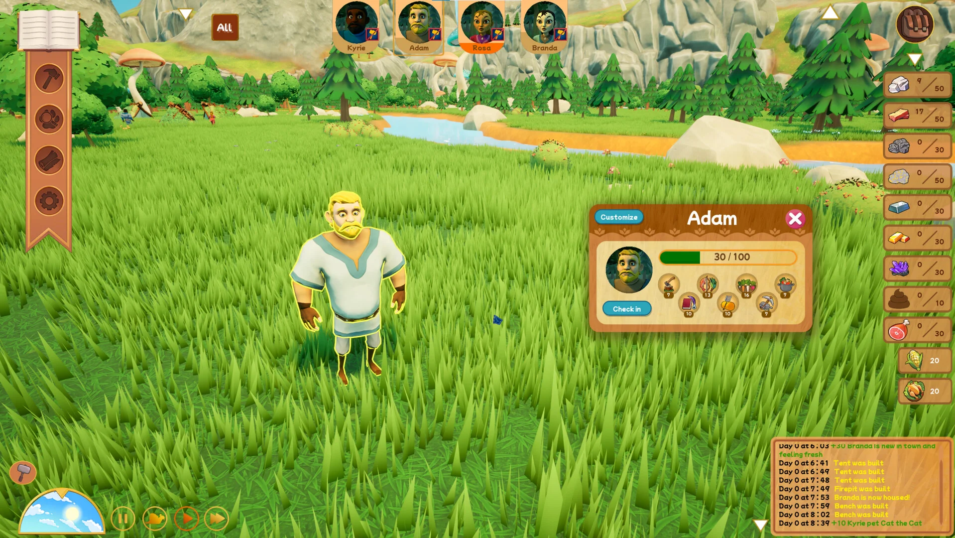 『Ages of Cataria』は、新しい大陸「カタリア」に移住した一族の物語から始まります。最初はわずかな家族だけの小さな集落ですが、時間が経つにつれて新しい住民が訪れ、やがて恋愛や結婚を経て世代が重なっていきます。プレイヤーは村の発展を見守りながら、住民たちの人生ストーリーが自然に生成されていく過程を体験することになります。