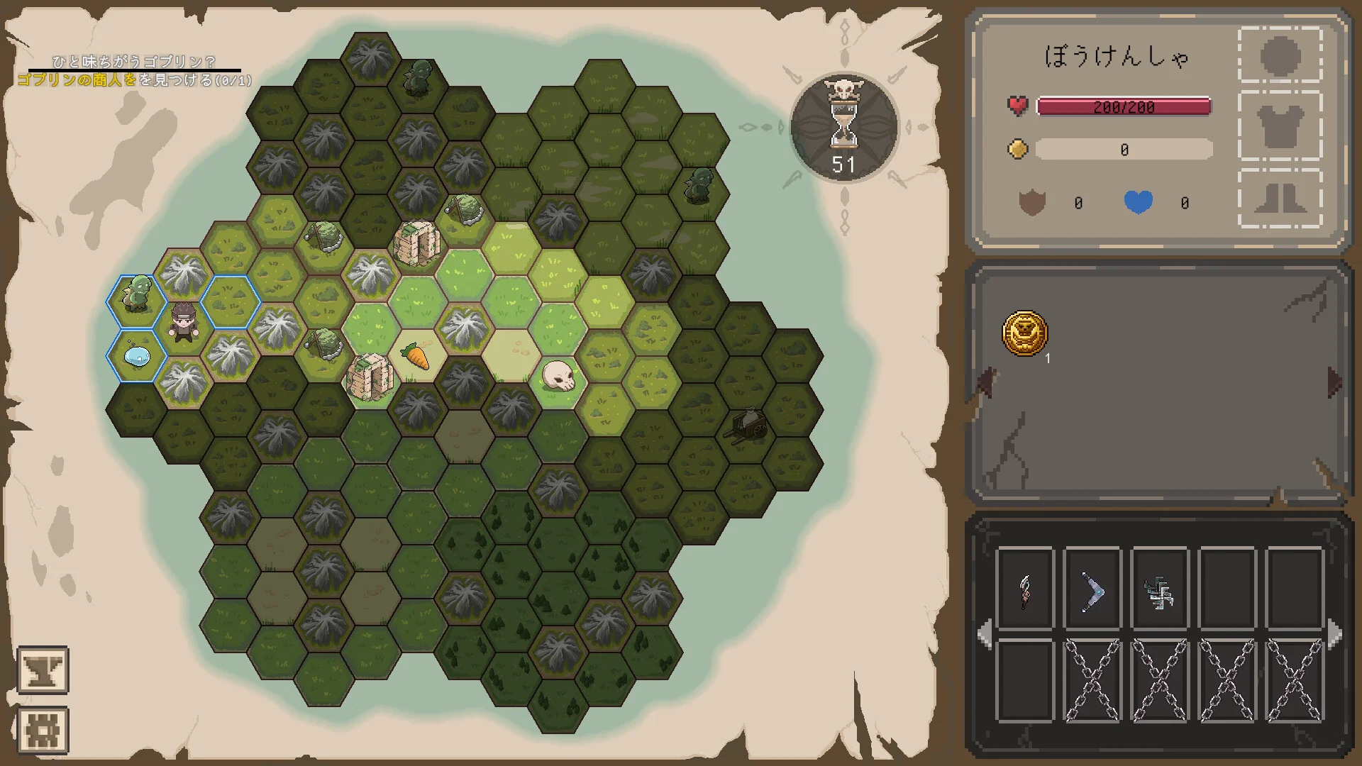 『Path of Gear~鍛冶師伝説~』は全3章構成の物語を予定しており、デモでは第1章をまるごと体験できます。マップ探索やランダムイベントを通じて、ゲームの世界観とバトルのテンポ、そして鍛冶師としての道が幕開ける様子を感じ取ることができます。
