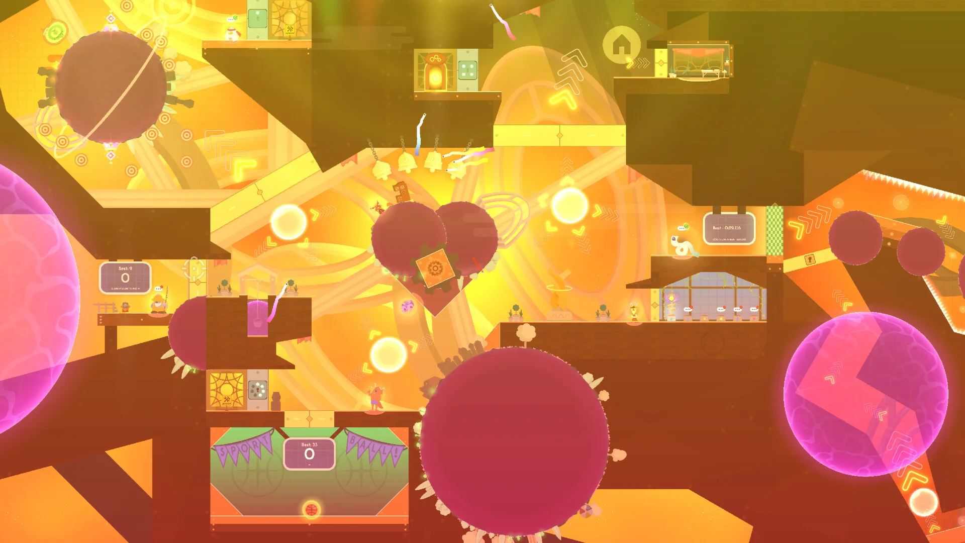360°の重力が作用する環境では、どの方向が「上」なのかが常に変わります。惑星の表面に着地すれば、その惑星の重力が働くため、プレイヤーの向きが瞬時に変わる仕組みです。この物理的な不安定さが、ゲームの核となる挑戦性を生み出しています。