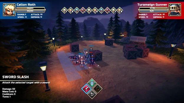 ゲームプレイの中心をなすのは、グリッド上で展開するターン制戦術バトルです。プレイヤーはキャロンを率いてタクティマガスという力を駆使し、複雑な戦闘を戦略で制することが求められます。敵配置や地形を読み、チーム全体の行動を計画することが勝利への鍵となるとのこと。