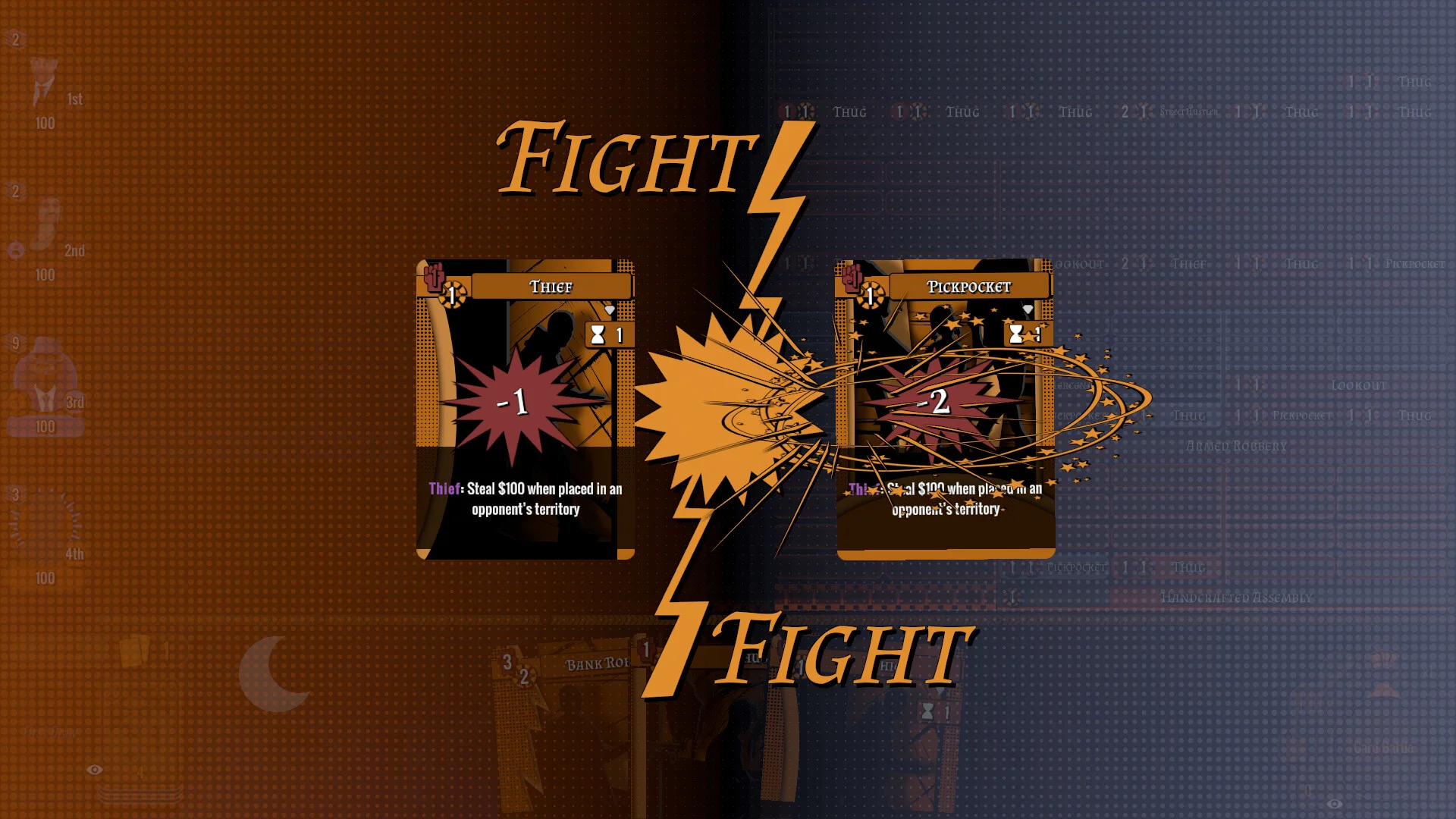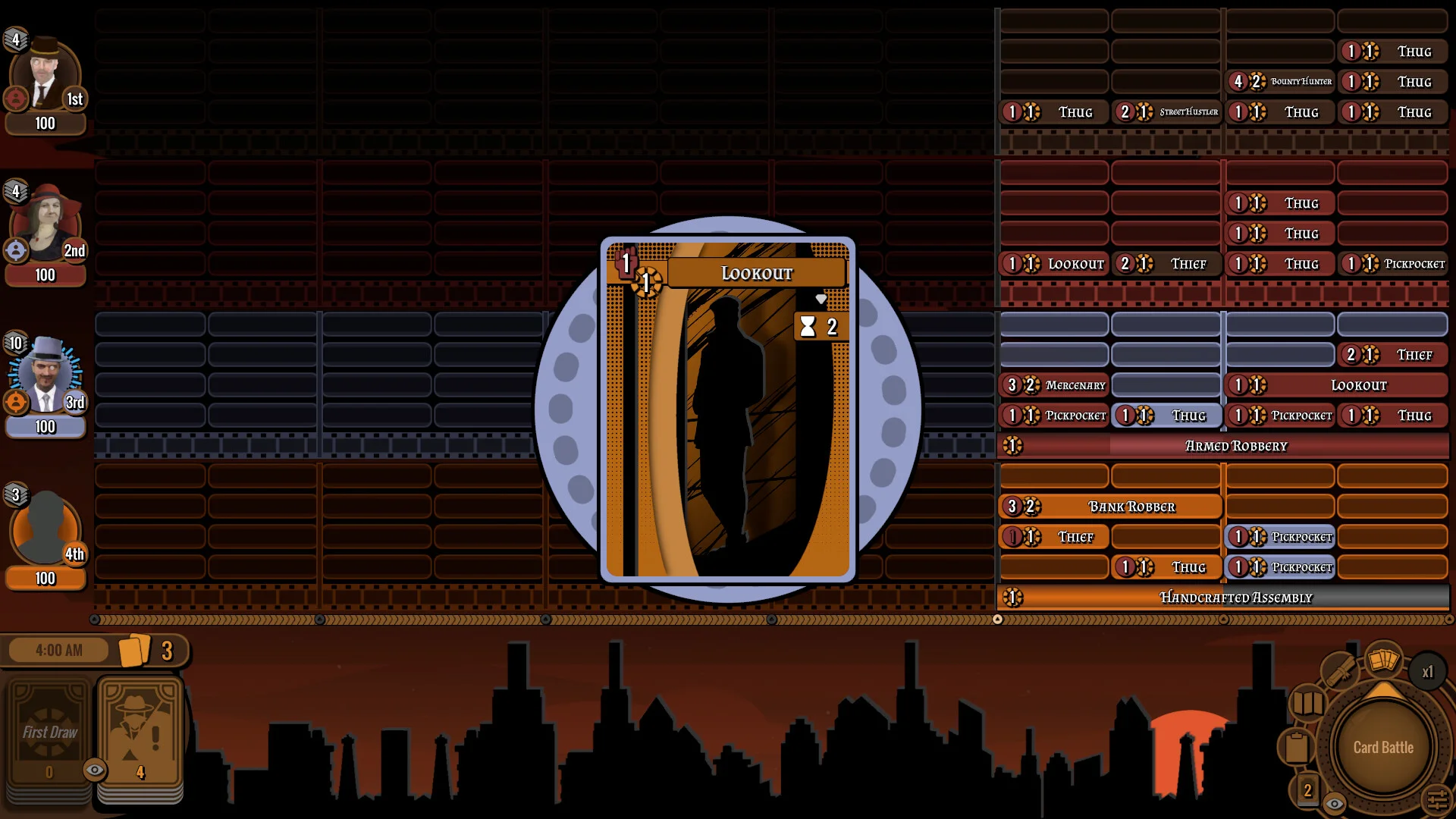 デッキ構成はキャラクターカード30種、装備カード19種、イベントカード2種、標準アクションカード5種で構成されています。これらのカードを組み合わせることで、自分だけのデッキを強化していく仕組みです。ターンごとにカードを活用し、印刷工場の施設をアップグレードしながら、都市での影響力を拡大させていきます。