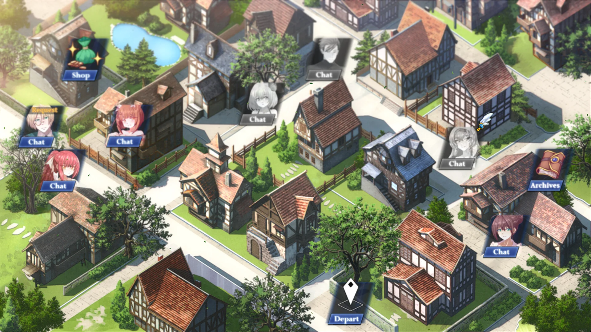 『Sacred Earth - Reverie』の特徴は、ストーリー駆動のビジュアルノベル要素と、従来的なRPGシステムの組み合わせにあります。王国の元騎士という設定から始まる物語は、仲間や町の人々との交流を通じて展開していきます。