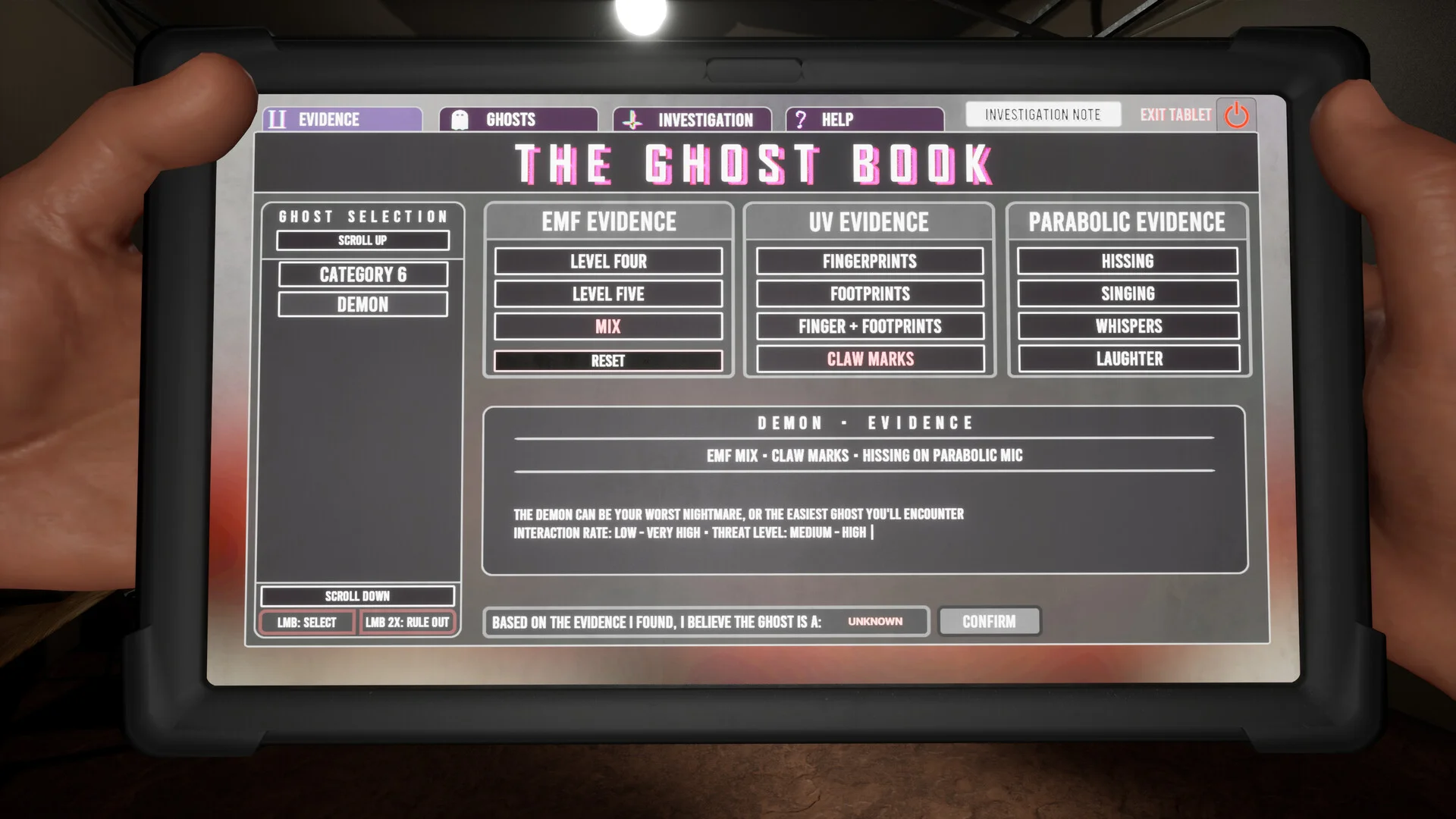 機器はアンロック・アップグレード可能となっており、調査を進めるにつれて新しい機材が解放されたり、既存機器が強化されたりします。装備の充実に伴い、より難しい幽霊の特定に挑めるようになるでしょう。