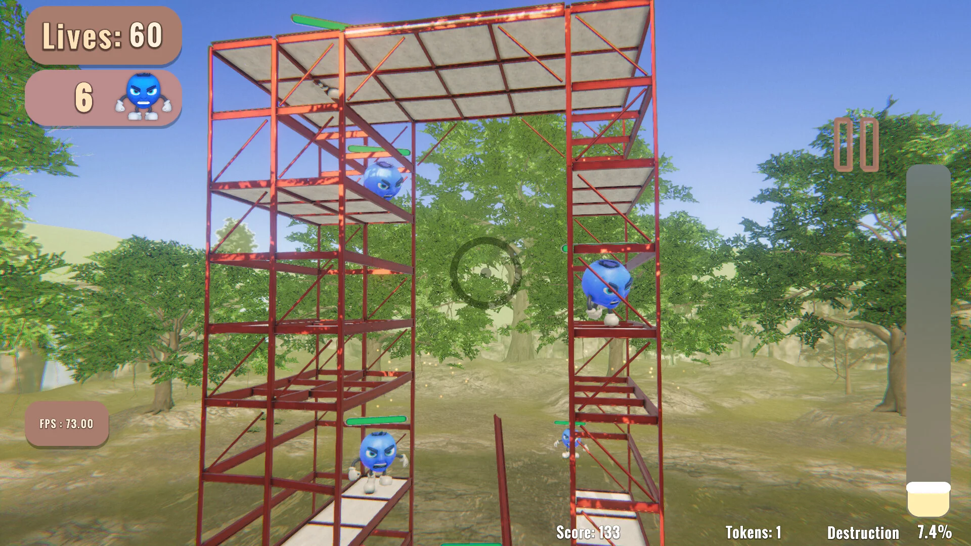 『Bent on Destruction』の基本的なプレイは、各レベルで破壊メーターを満たしながら敵のタワーを倒すというもの。破壊メーターが満杯になると特殊攻撃を獲得でき、その攻撃を戦略的に敵へ叩き込んで全滅を目指します。