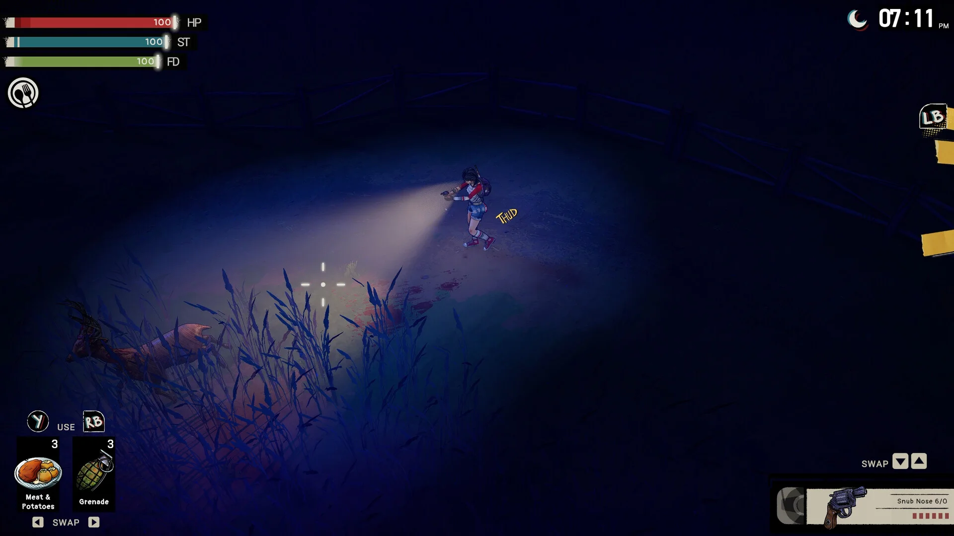 ビジュアル面では、大胆なコミックアートスタイルで80年代ホラー映画の雰囲気を再現しています。ピクセルアートではなく、手描きに近い描線が印象的な見た目は、インディーゲームながら独自の存在感を放っているようです。