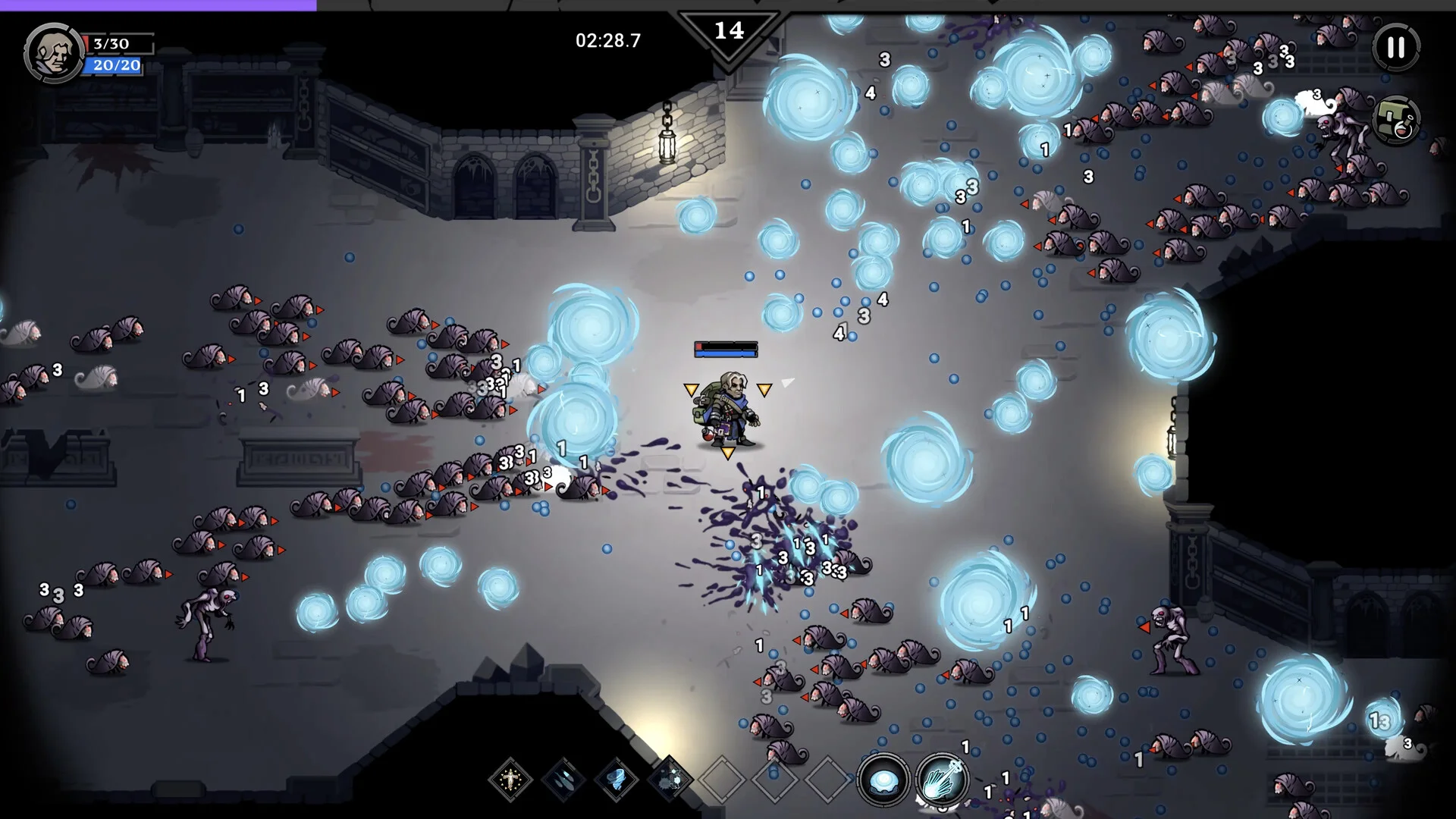 『Last Mage』の最大の特徴は、魔法のカスタマイズの自由度です。スペルを選んで強化することで、プレイスタイルに合わせた魔法体系を構築できます。大ダメージを狙うのか、高速ミサイルで数で圧倒するのか、それとも短いクールタイムで連射するのか――スターティングルーン(初期魔法)を選ぶ時点から、プレイヤーの意思が反映される仕組みになっています。