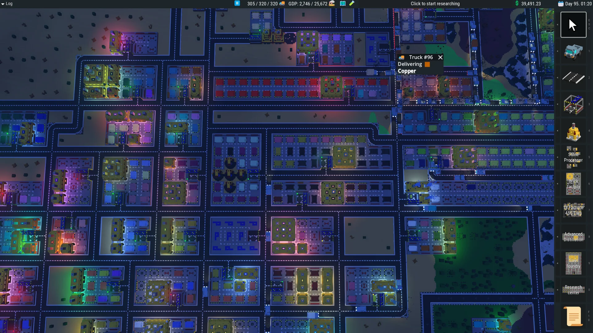 本作は鉱山町から始まる都市経営ゲーム。トラック車隊を拡大しながら、鉱石採掘から精錬、加工、製品化まで一貫したサプライチェーンを構築します。小さな資源採掘地を、効率的な産業都市へと発展させるのが目標です。