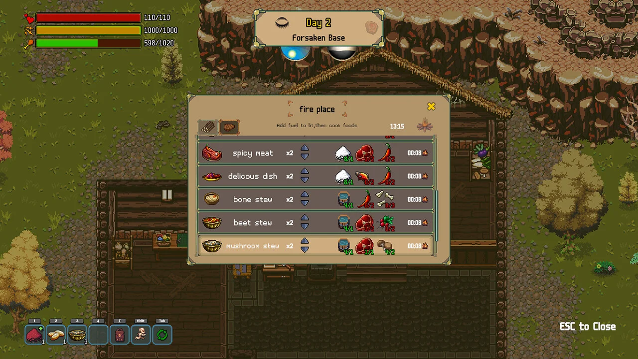プレイヤーは自分だけの拠点「Forsaken Base」を建設し、風車や家畜小屋、養蜂箱などの施設を管理できます。収穫した作物や狩猟で得た素材を使って、「スパイシーミート」や「キノコスープ」といった多彩な料理を暖炉で調理可能です。これらの料理は体力回復だけでなく、ステータス強化効果も持っており、戦略的な使い分けが重要になります。