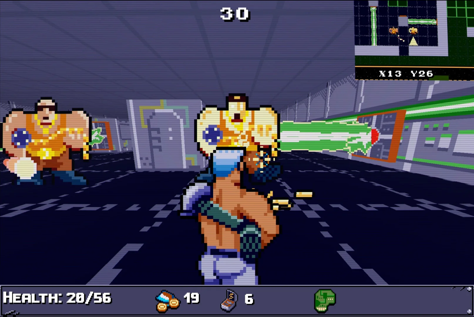 本作は、古典的なターン制ダンジョンクローラーに80年代アクション映画のテイストを組み合わせた独特な作品です。従来のファンタジーRPGでは地下室でネズミを相手に小さなナイフで戦うところを、本作では上半身裸のマッチョなコマンドーとなって、巨大な銃を片手にテロリストの島基地を襲撃します。