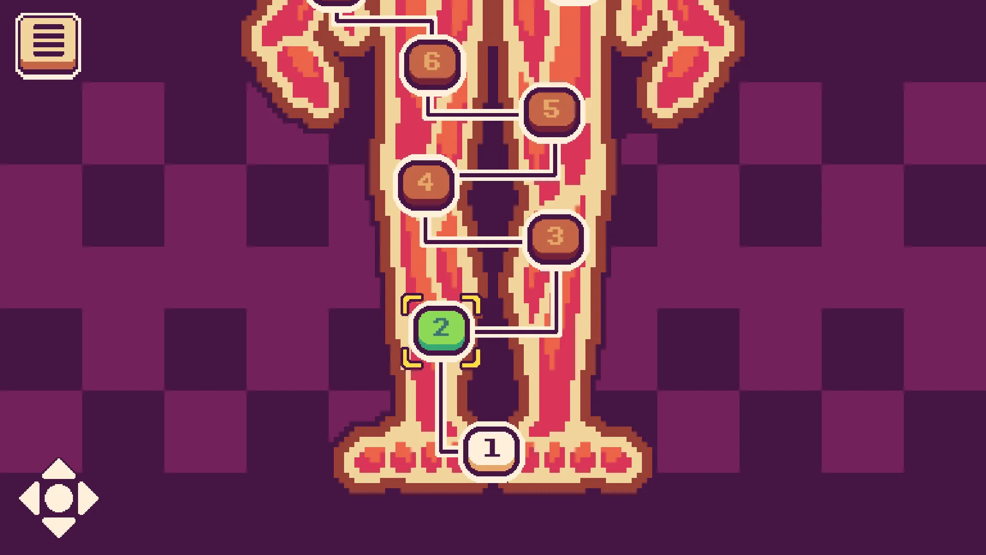 本作はレトロなピクセルアートスタイルを採用しており、可愛らしいキャラクターデザインが特徴的です。ワールドマップは人体の形をしたユニークなデザインで、まるで生き物の体内を探検するかのような感覚でステージを選択できます。