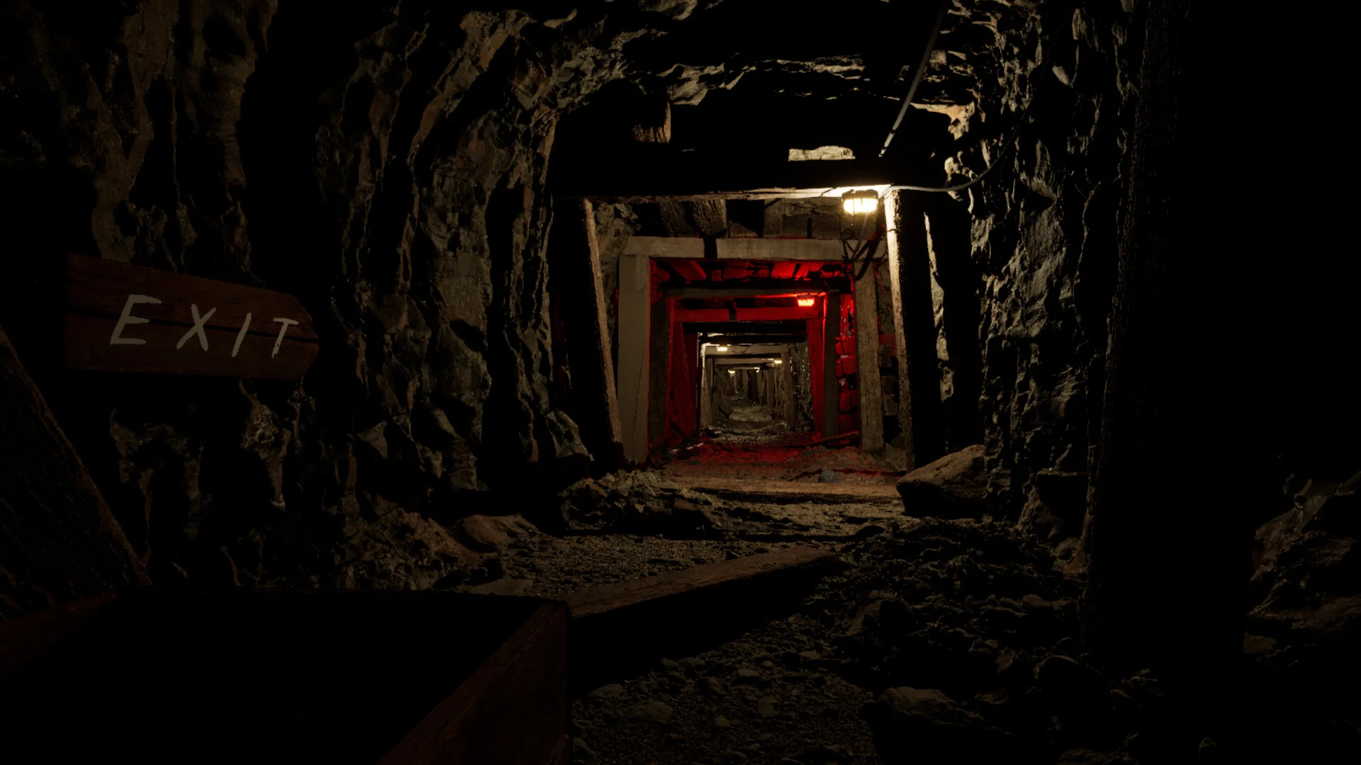 懐中電灯の円形の光が周囲の暗闇を強調し、視覚的な情報が制限されることで、プレイヤーの想像力と恐怖心を増幅させる演出となっています。白黒フィルターやノイズエフェクトが使用されるシーンでは、VHSのような質感がさらに没入感を深め、古びた採掘坑や機械設備のテクスチャがリアルに描写されています。